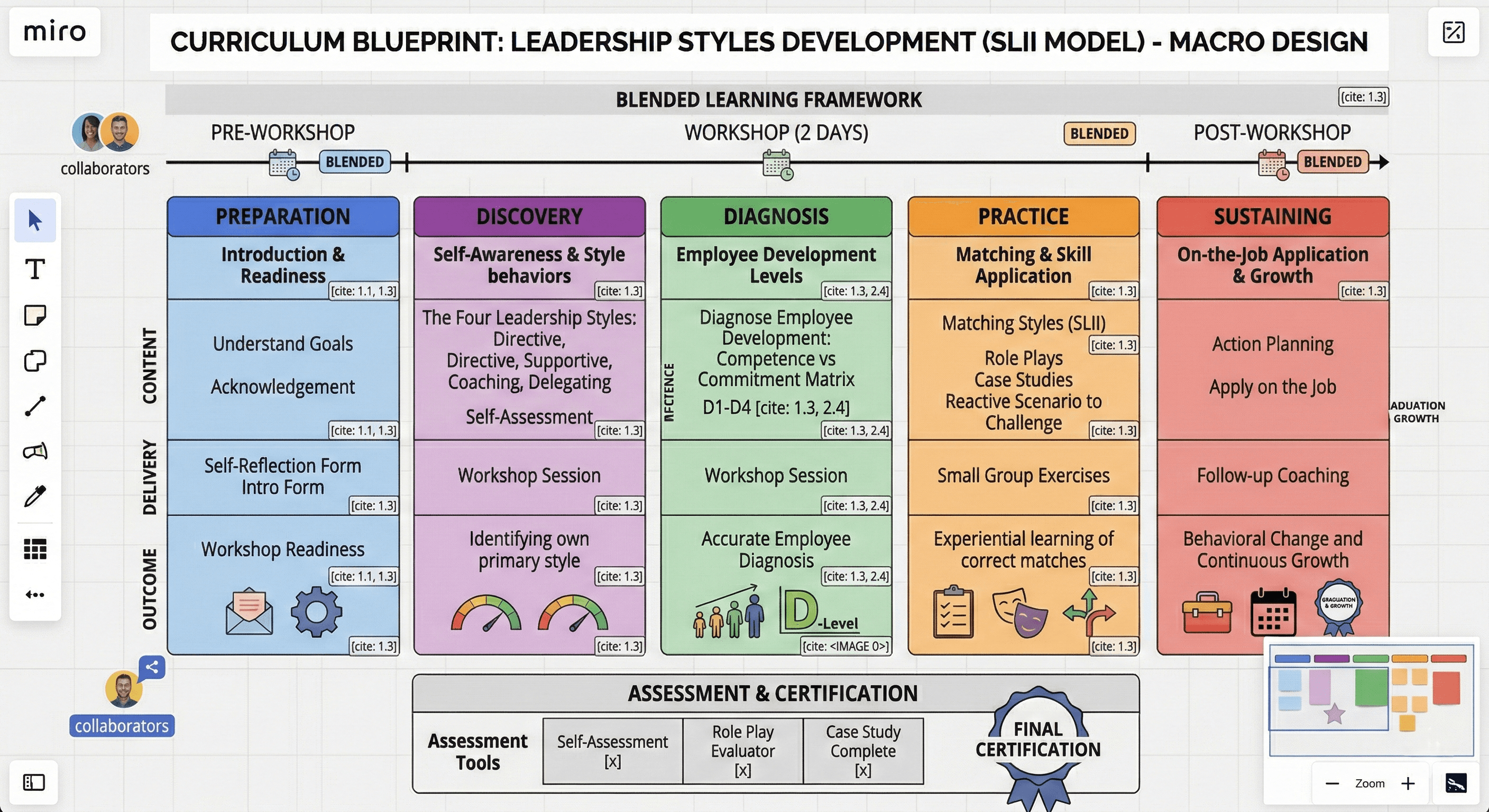 The program is designed for real-world impact, aligning leadership practices with organizational values and vision to foster sustainable growth and a high-performing workplace culture. This dynamic methodology ensures that participants not only learn but also practice and internalize key leadership concepts, preparing them to tackle real-world challenges effectively and confidently.