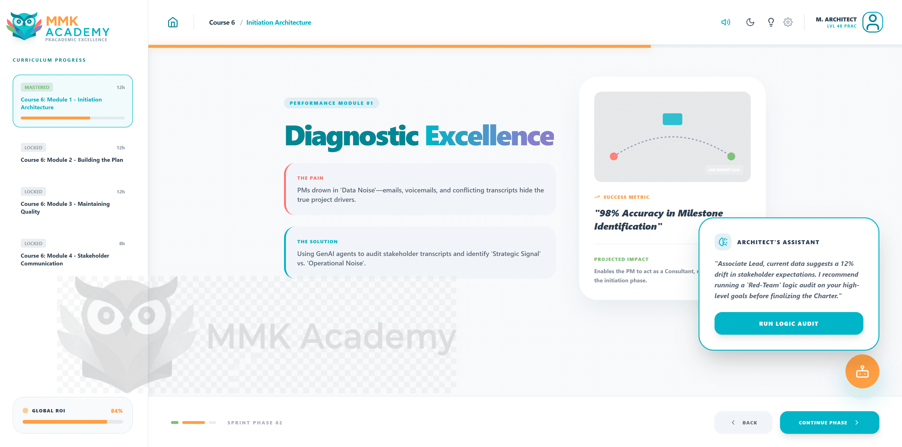 This course tackles early-stage project failures like stakeholder misalignment and scope creep by teaching learners how to engineer operational clarity. Utilizing the PAS (Problem-Agitation-Solution) framework, learners master business writing to construct robust Project Charters and RACI matrices. Furthermore, the course integrates AI Product Strategy tools to automate complex Stakeholder and Cost-Benefit analyses. To successfully complete this phase, the learner's drafted Project Charter must pass an AI-auditor check verifying 90%+ operational feasibility and clarity.