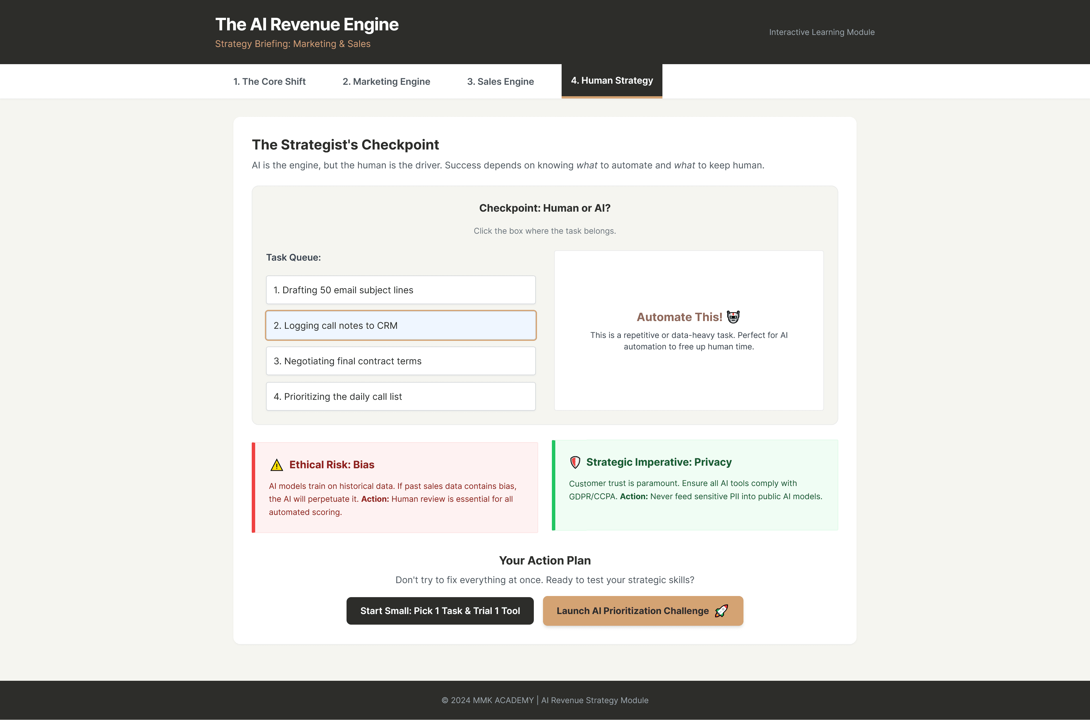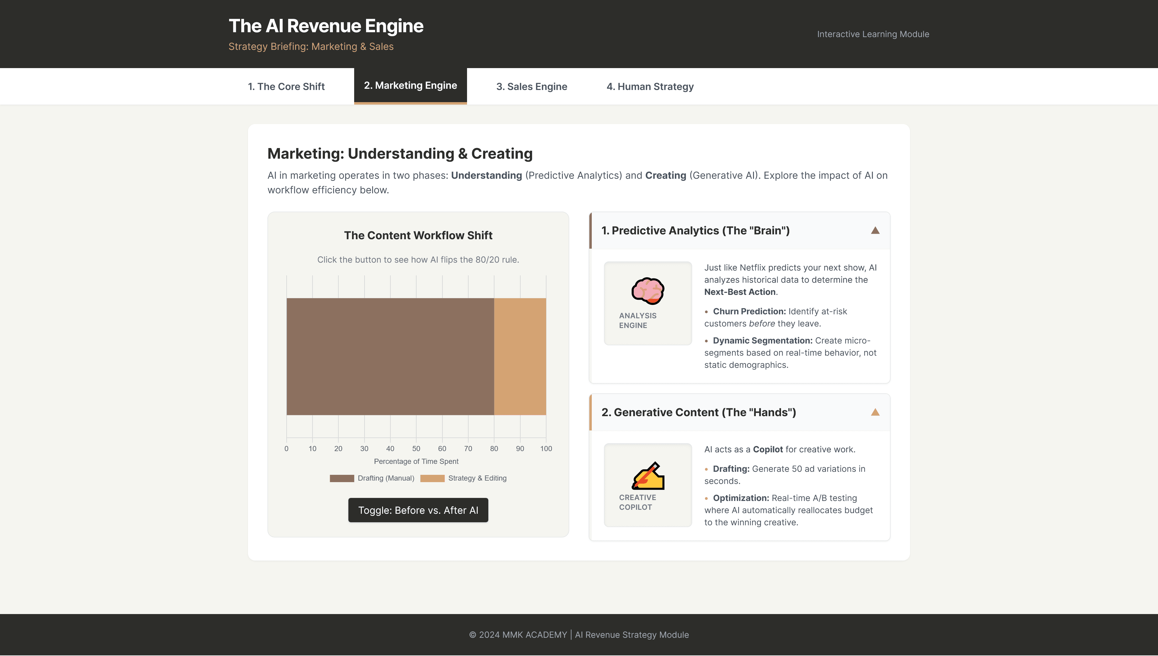 Sample Module Goal: Understand how AI drives revenue through Hyper-Personalisation (Marketing) and Operational Efficiency (Sales), and how to apply these concepts.